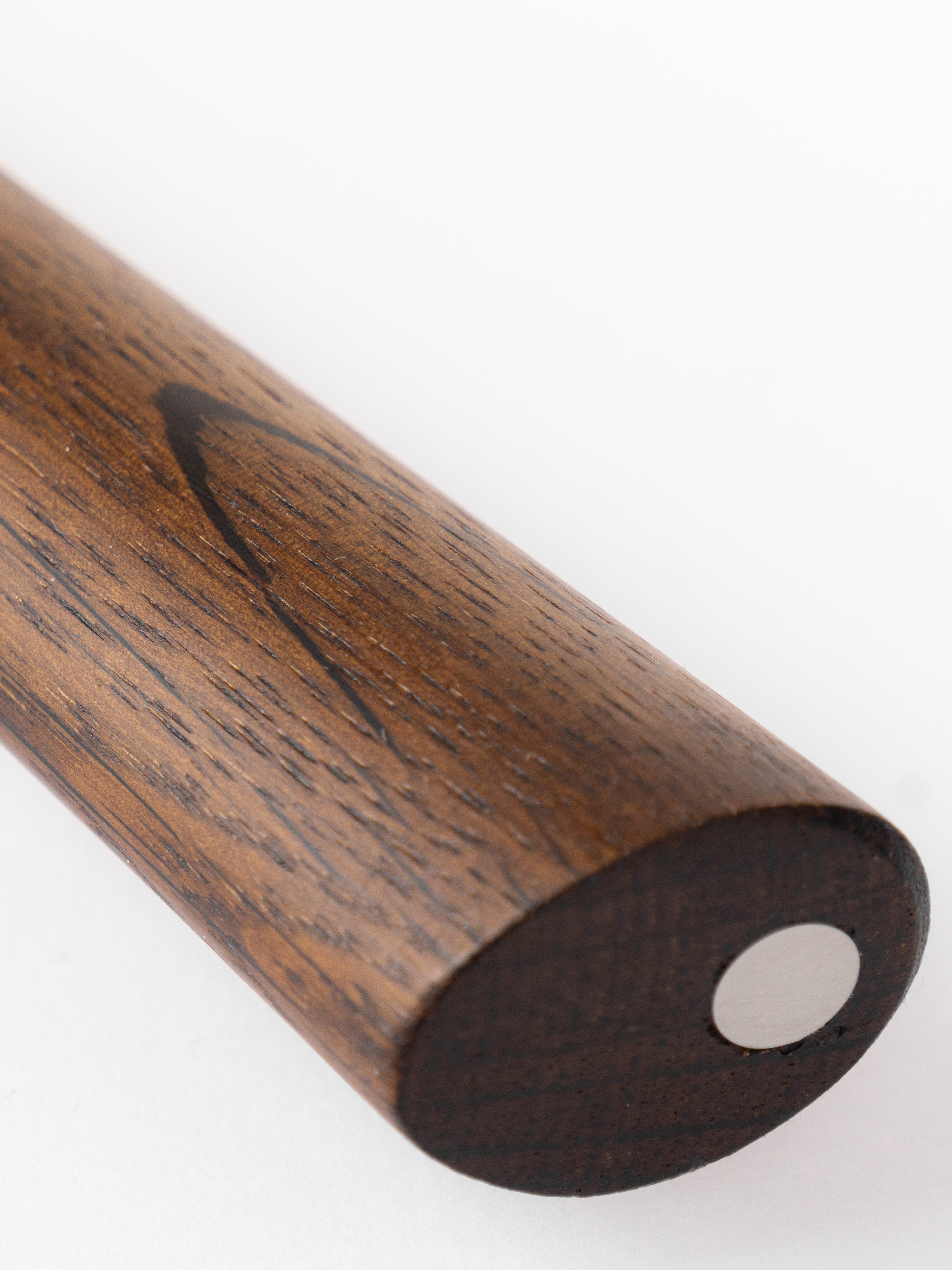 Der Griff aus Räuchereiche liegt ergonomisch und sicher in der Hand – ein zeitloses Material, das für seine Langlebigkeit bekannt ist und mit jeder Nutzung an Charakter gewinnt.